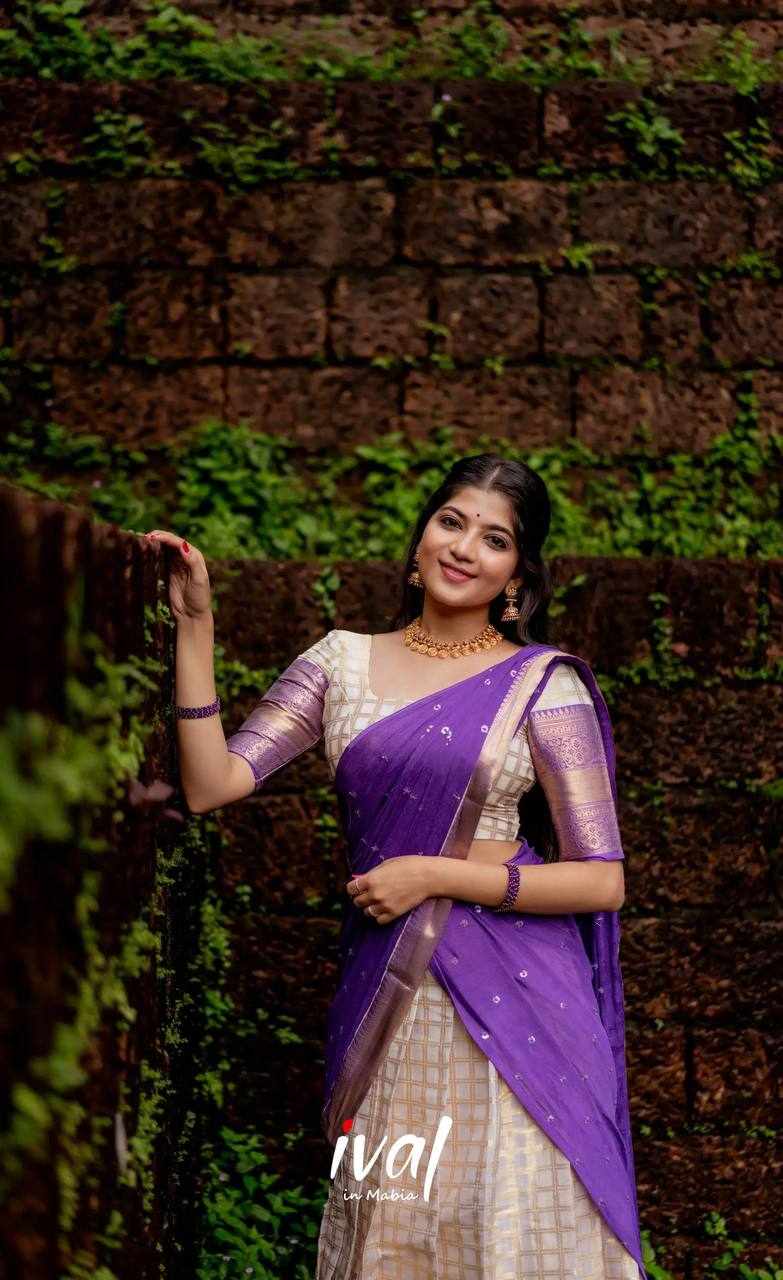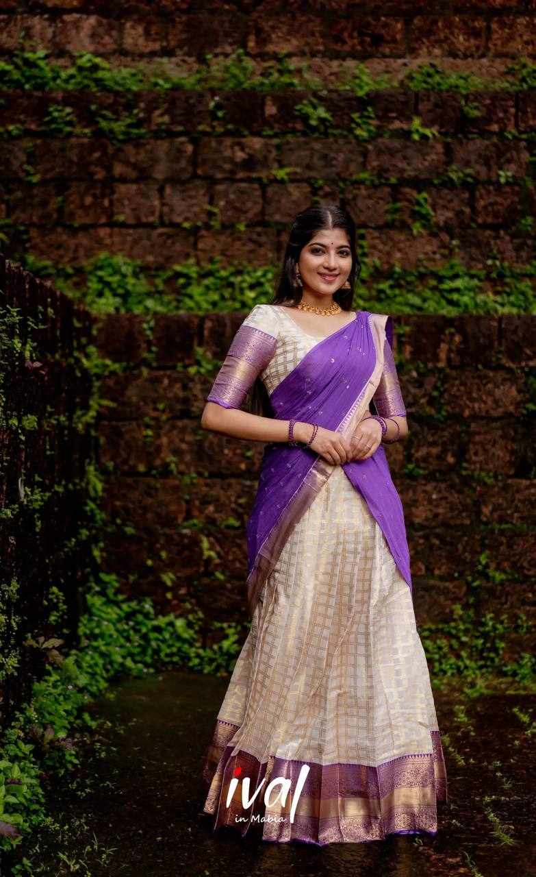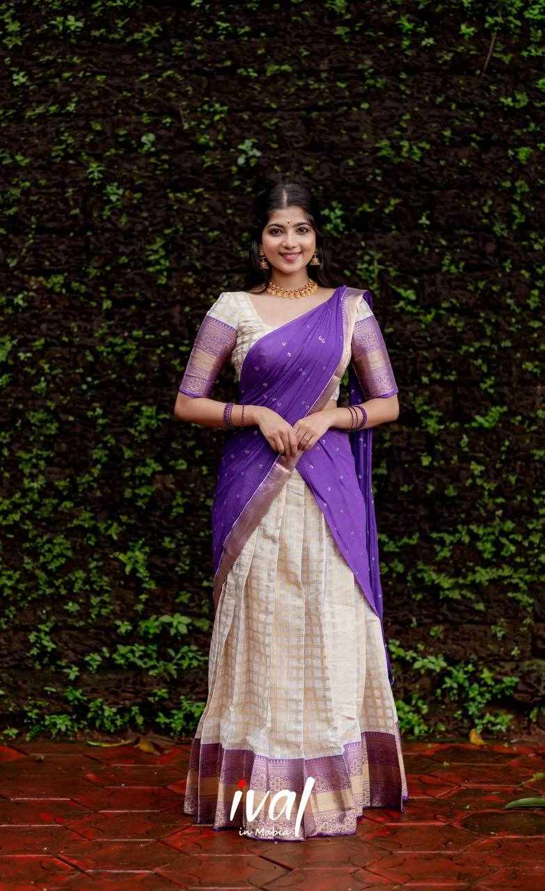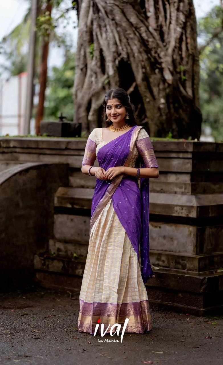 Name : KP-W 352 Kanjiveram Silk Purple Colour Half Saree