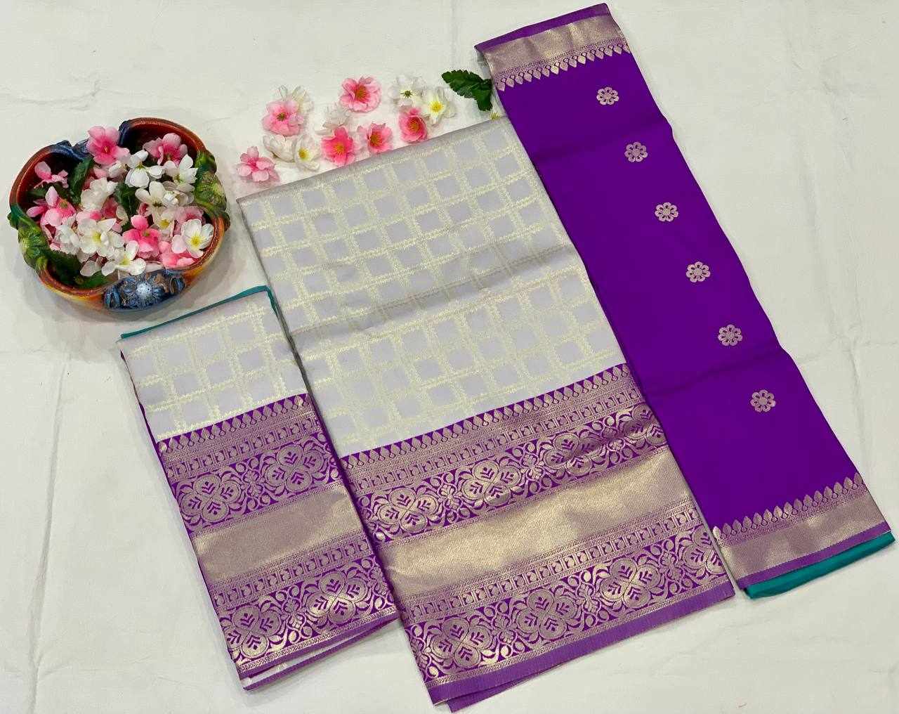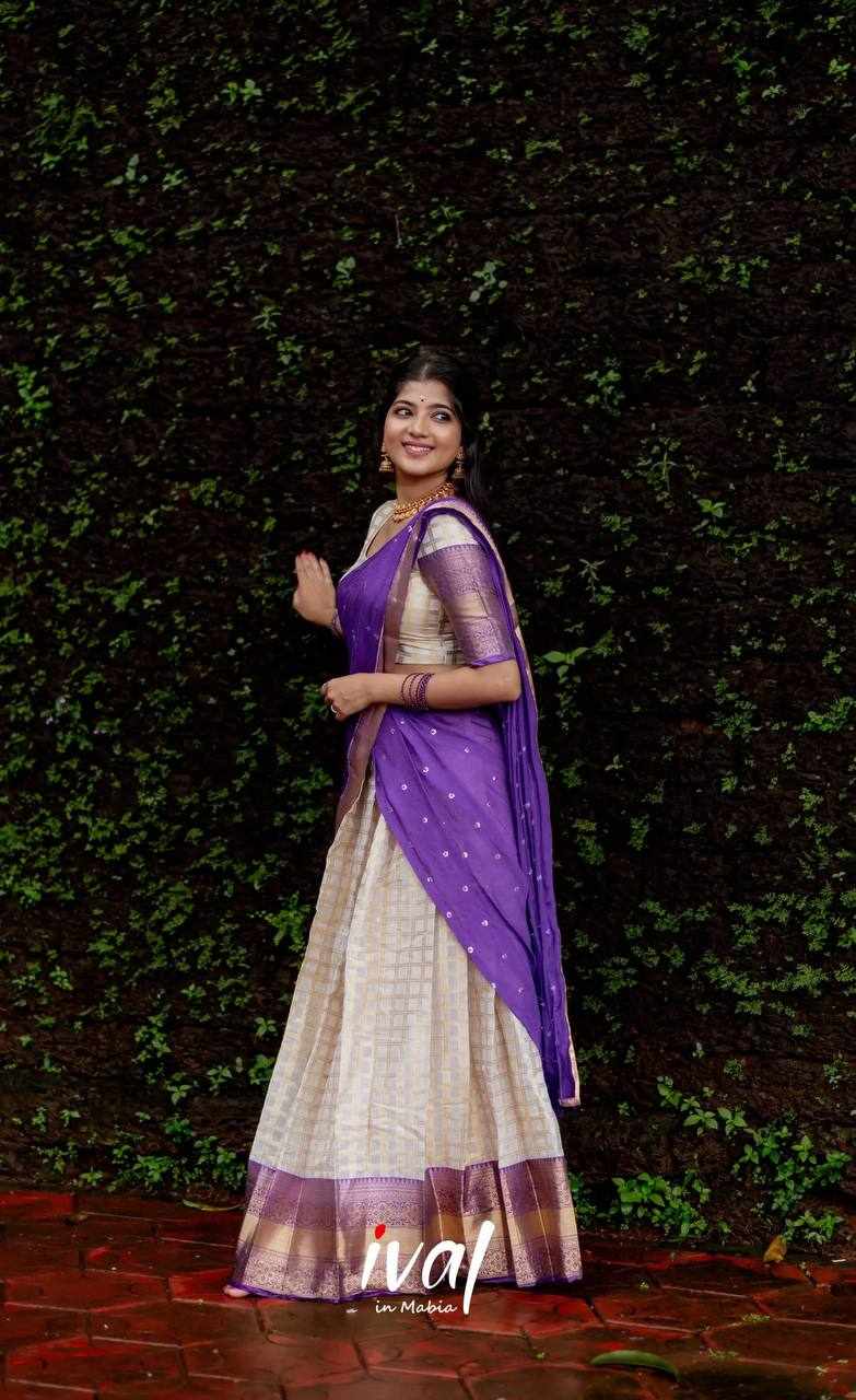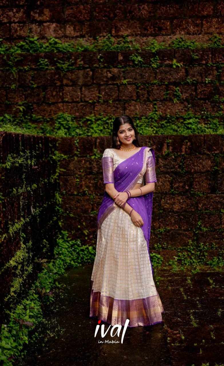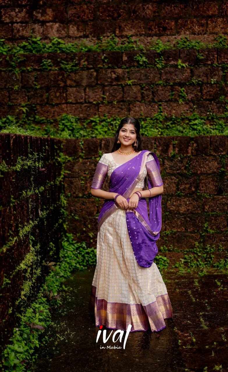 Name : KP-W 352 Kanjiveram Silk Purple Colour Half Saree