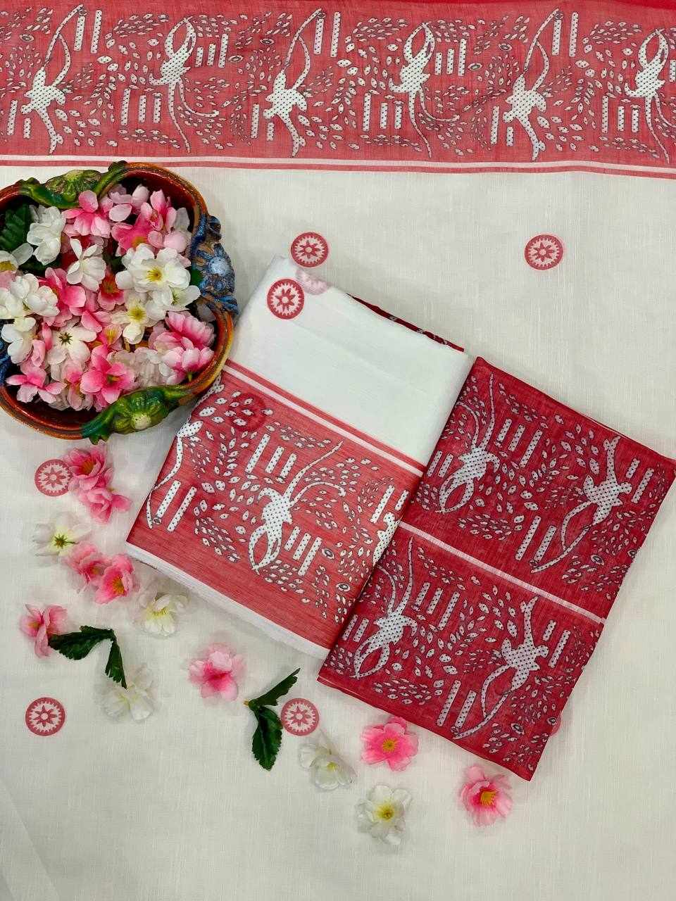 Saree Fabric: Premium Linen Cotton with beautiful digital print