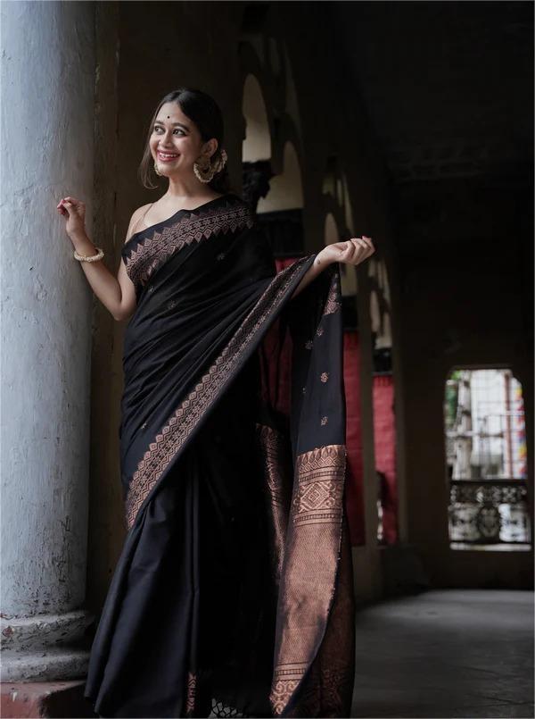 Name : MF 1950 BLACK BANARASI SOFT LICHI SILK SAREE