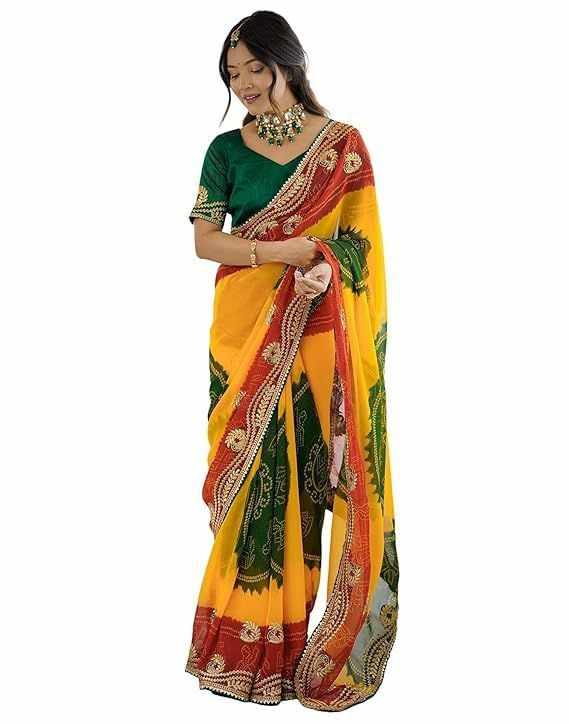 | Name : | PIYU P1030 mor bandhani Yellow-Green Saree |