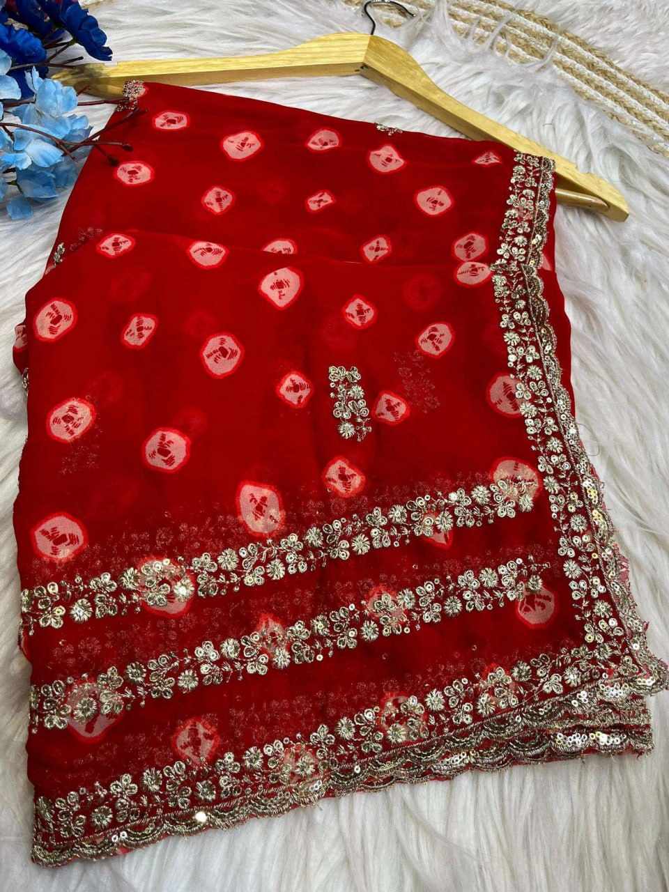 Home / PIYU P1057 LEHERIYA COIN RED SAREE