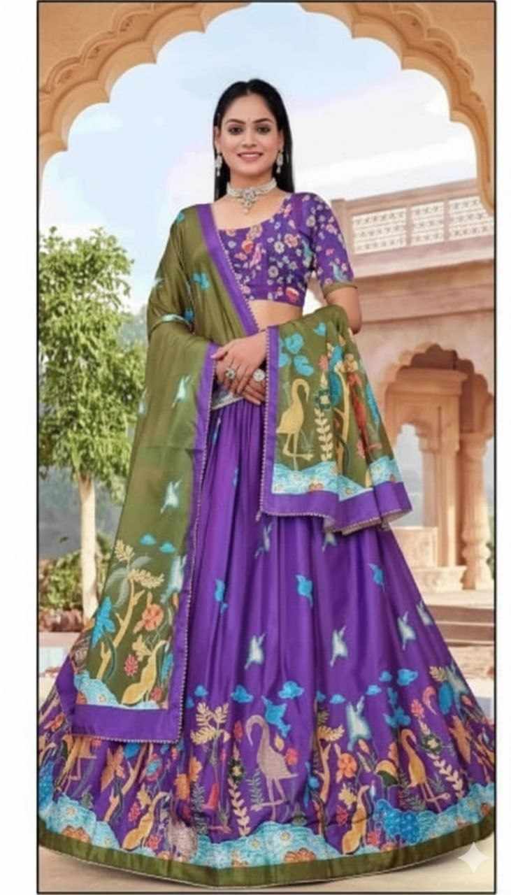 | Name : | PIYU 14-2 Silk Digital print Purple Lehnga |