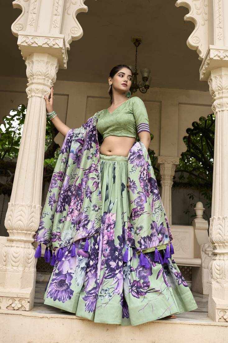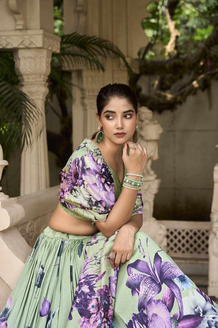Home / PIYU 26-1 Silk Digital print Green Lehnga