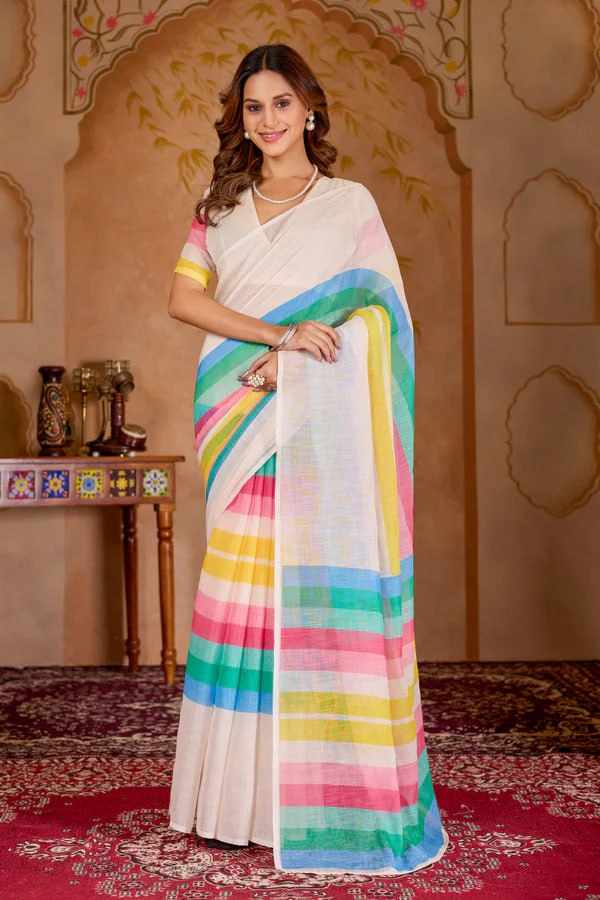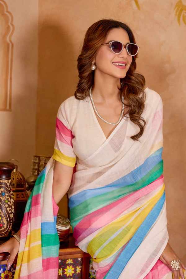 Home / PIYU P1039 White rose Saree